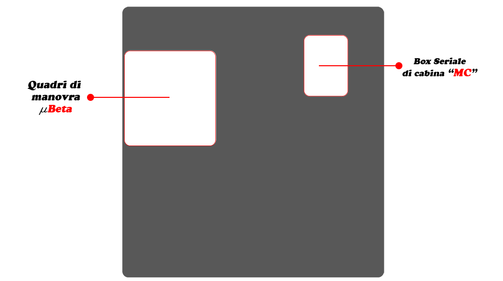 • Box seriale di cabina “MC”: il dispositivo contiene la scheda elettronica Micro Beta 1C, la bottoniera di manutenzione, morsettiere per connessioni di cabina e di vano pre-cablate. Il dispositivo gestisce, attraverso la scheda 1C, tutte le operazioni e comunicazioni tra la cabina e il quadro di manovra.